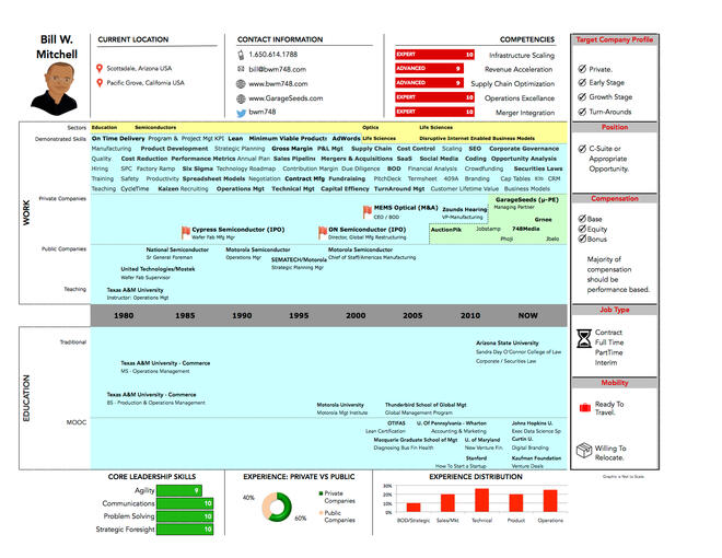 Bill, is a well known and respected senior executive with more than 30 years experience in high technology dealmaking, manufacturing, retailing and leveraging the internet to drive profitable growth.The first half of his career was spent building classic management skills; technology, R&D, manufacturing, supply chain and accounting with the 2nd half devoted to helping companies manage through high change environments, from Venture Capital backed startups like Mems Optical to multi-billion dollar Private Equity funded businesses like ON Semiconductor.